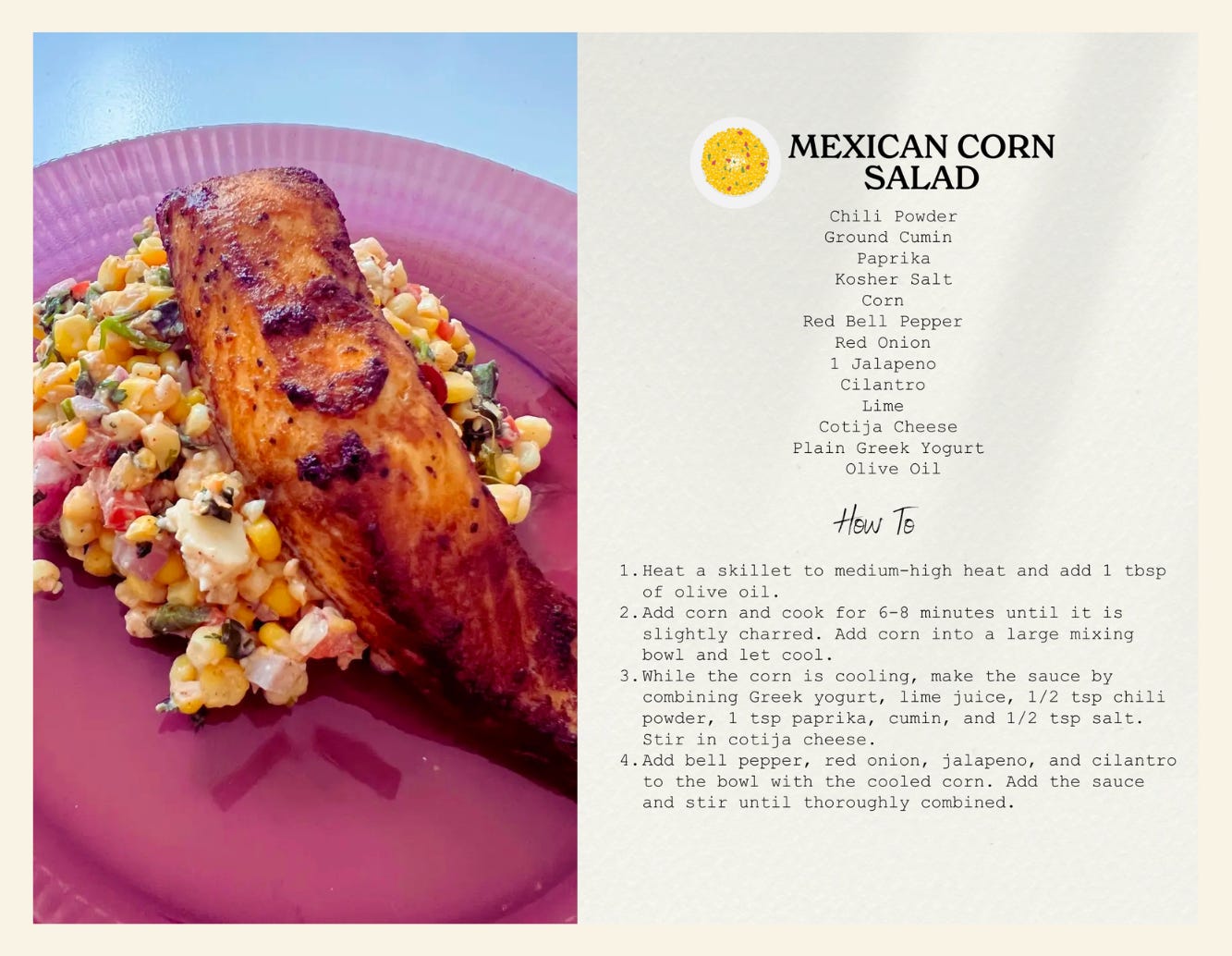 Corn strikes again in this Mexican Corn Salad recipe. The corn is cut off the cob raw and then slightly charred in a frying pan. Bell pepper, red onion, jalapeño, and spices add a little crunch and heat while the Greek yogurt, lime juice, and cotija cheese mellow it out for a delicious side salad. I especially like it paired with grilled salmon.